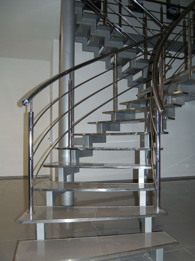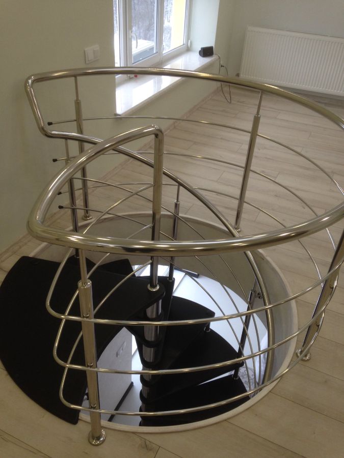 Перила та інші комплектуючі з нержавіючої сталі для доповнення сходових конструкцій.